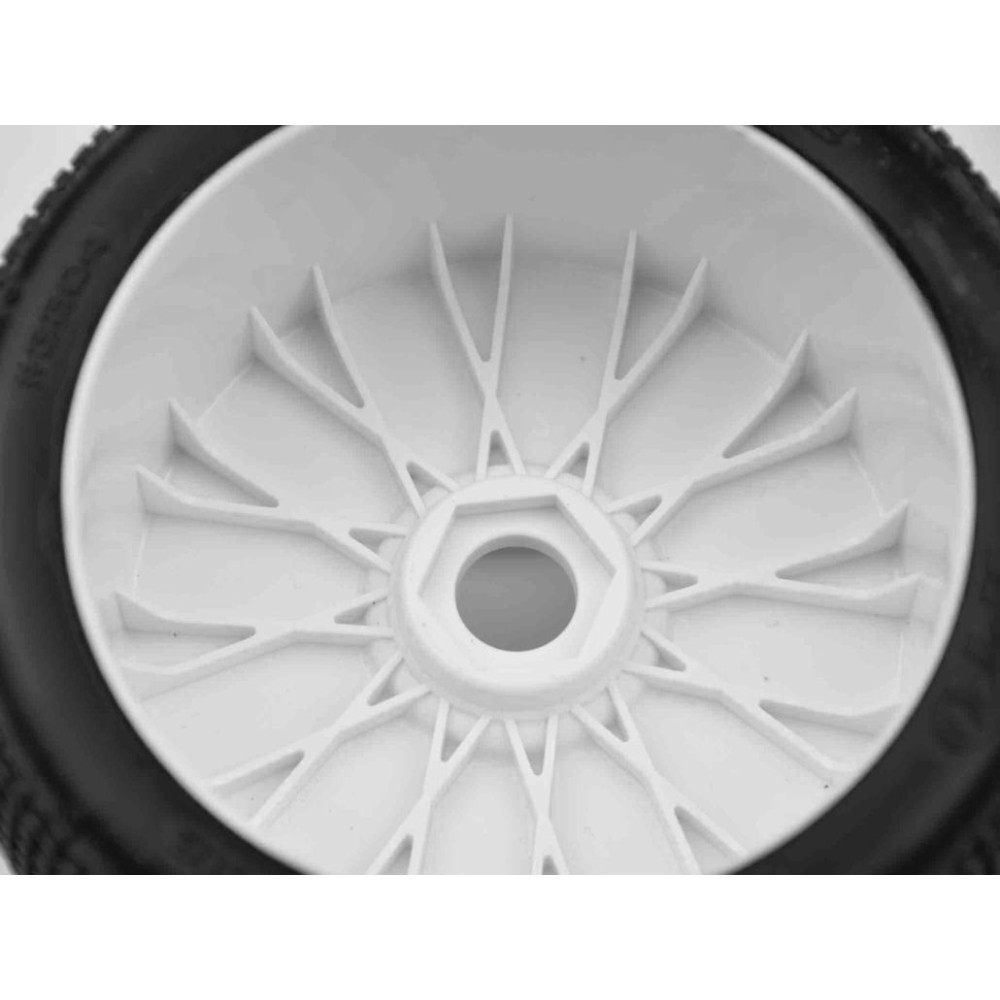 Naše pneumatiky TPRO jsou k dispozici ve 2 různých typech. Jednak jako nelepené pneumatiky v sadě po 4 kusech, nebo jako hotové lepené pneumatiky v páru po 2 kusech. U lepených kol se používá naše modrá vložka TPRO ve střední barvě (TP1309I3) a bílé disky v měkké verzi (TP100011SWH).