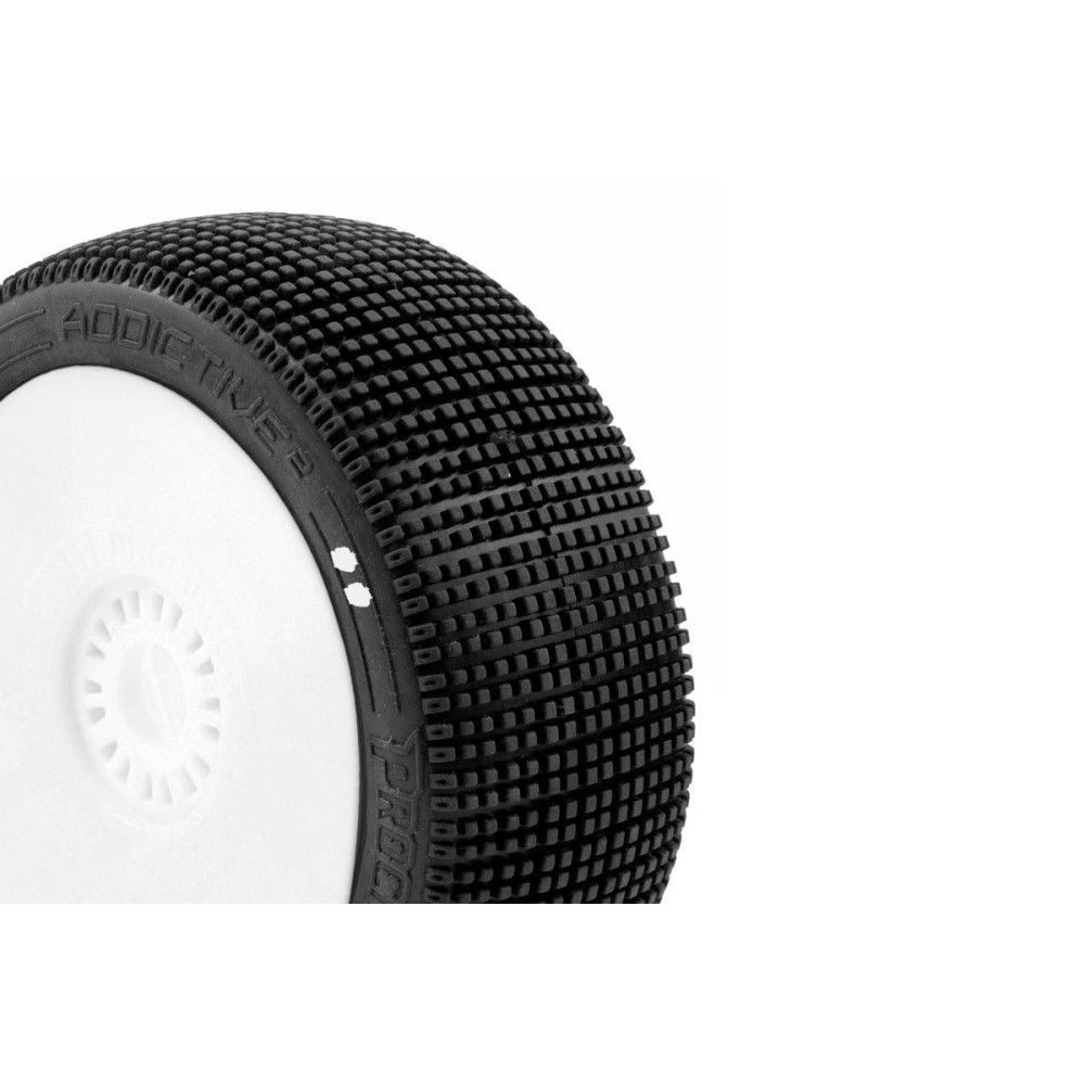ADDICTIVE V2 BUGGY S1 (SUPER SOFT) nalepené pneumatiky, bílé disky, 2 ks.