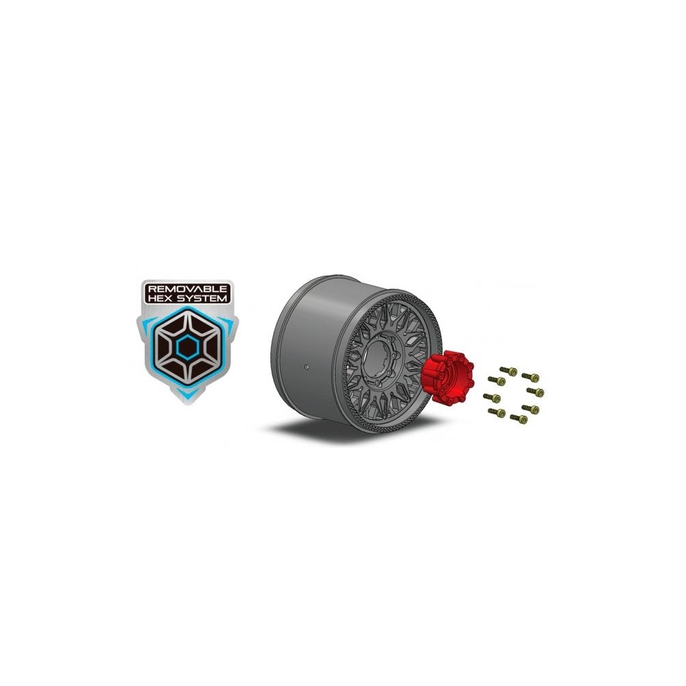 Systém odnímatelných hexů je nová funkce, která vám umožní vybrat si z různých středů, tak aby kola pasovala na vaše RC auto. Ty jsou součástí balení a lze je snadno nasadit a sejmout pomocí přiložených šroubků.