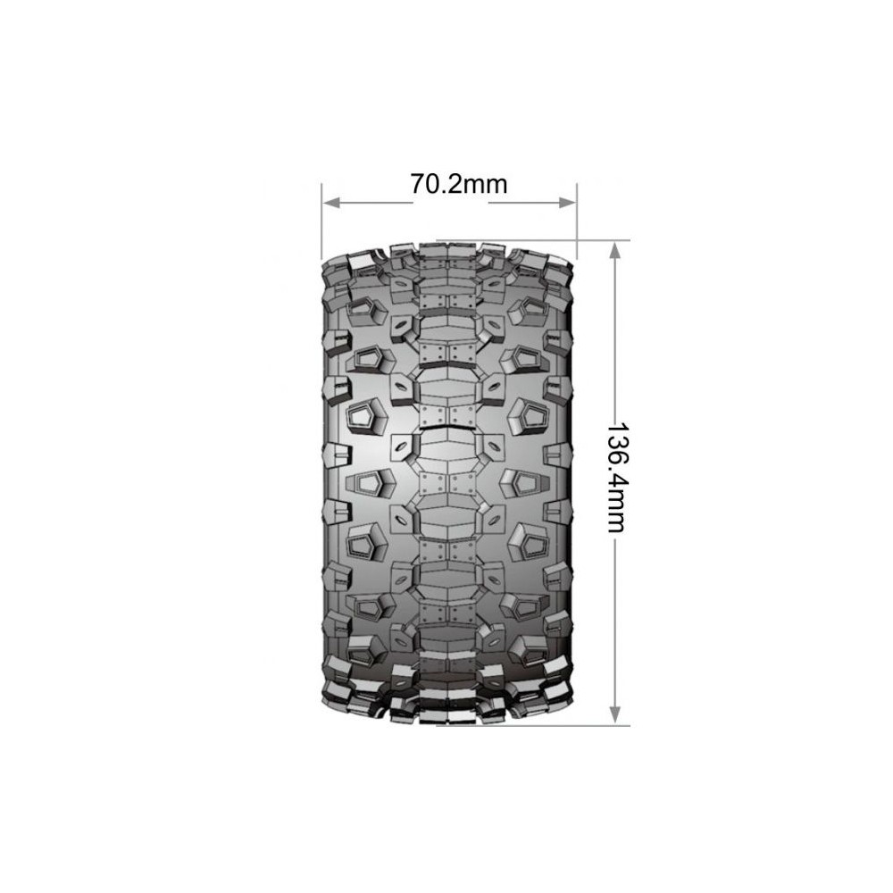 Kompletní kola pro truggy 1/10. Pneumatiky vhodné pro všechny povrchy. Disky pro Traxxas...