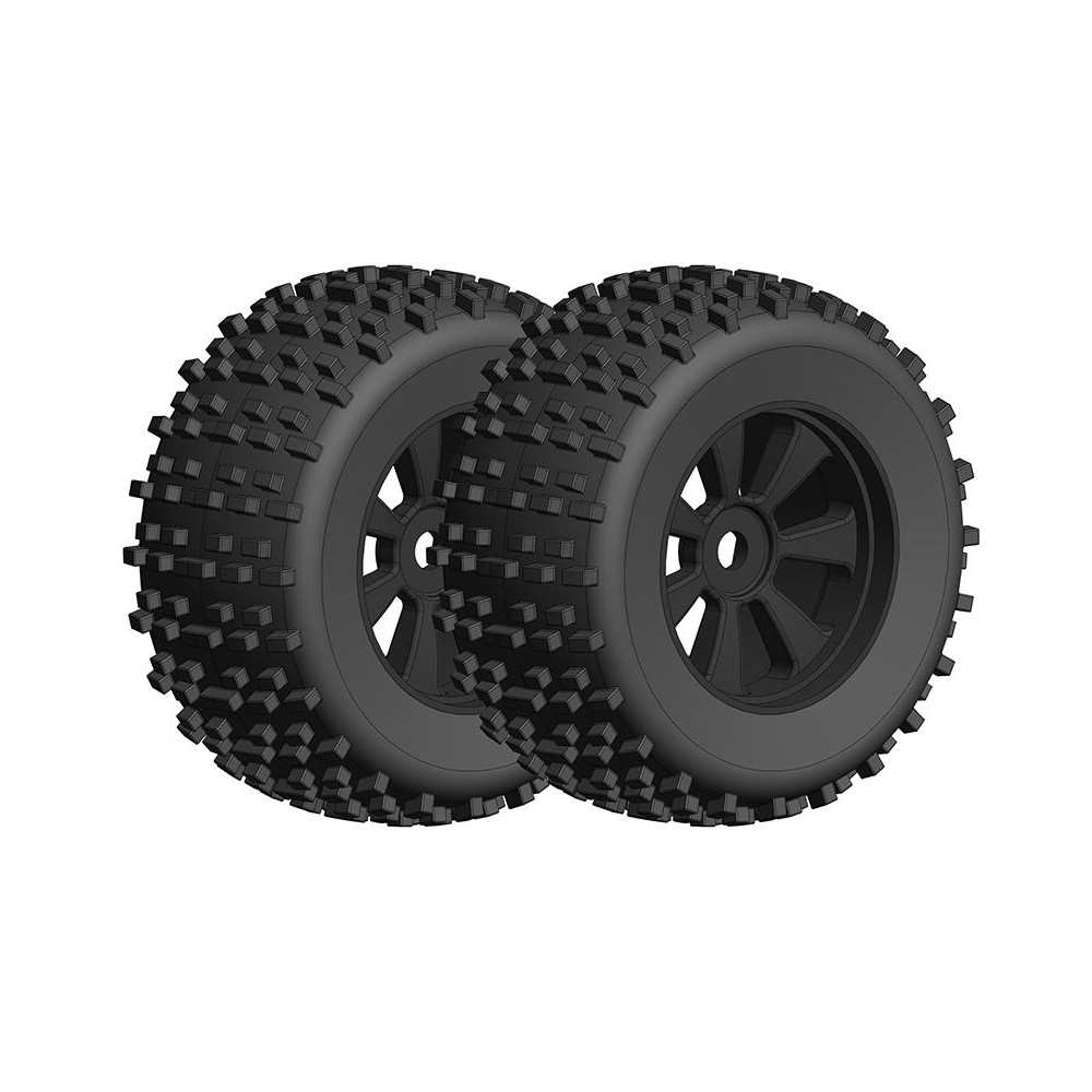 Kompletní kola pro truggy 1/8. Pneumatiky vhodné do sucha i do mokra, pro tvrdou i prašnou hlínu...