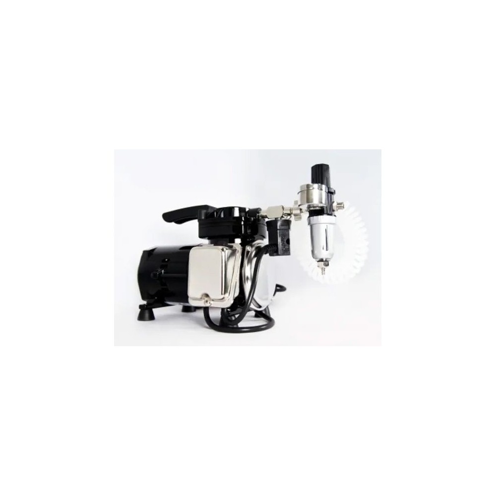 Kompresor pro začátečníky i profesionály je vybavený automatikou, redukčním ventilem tlaku, odkalovačem a oplétanou hadicí. Velmi nízká hlučnost, hmotnost jen 3,2 kg. Zapínací/vypínací tlak 40 psi/60 psi. Průtok vzduchu 14-18 l/min.