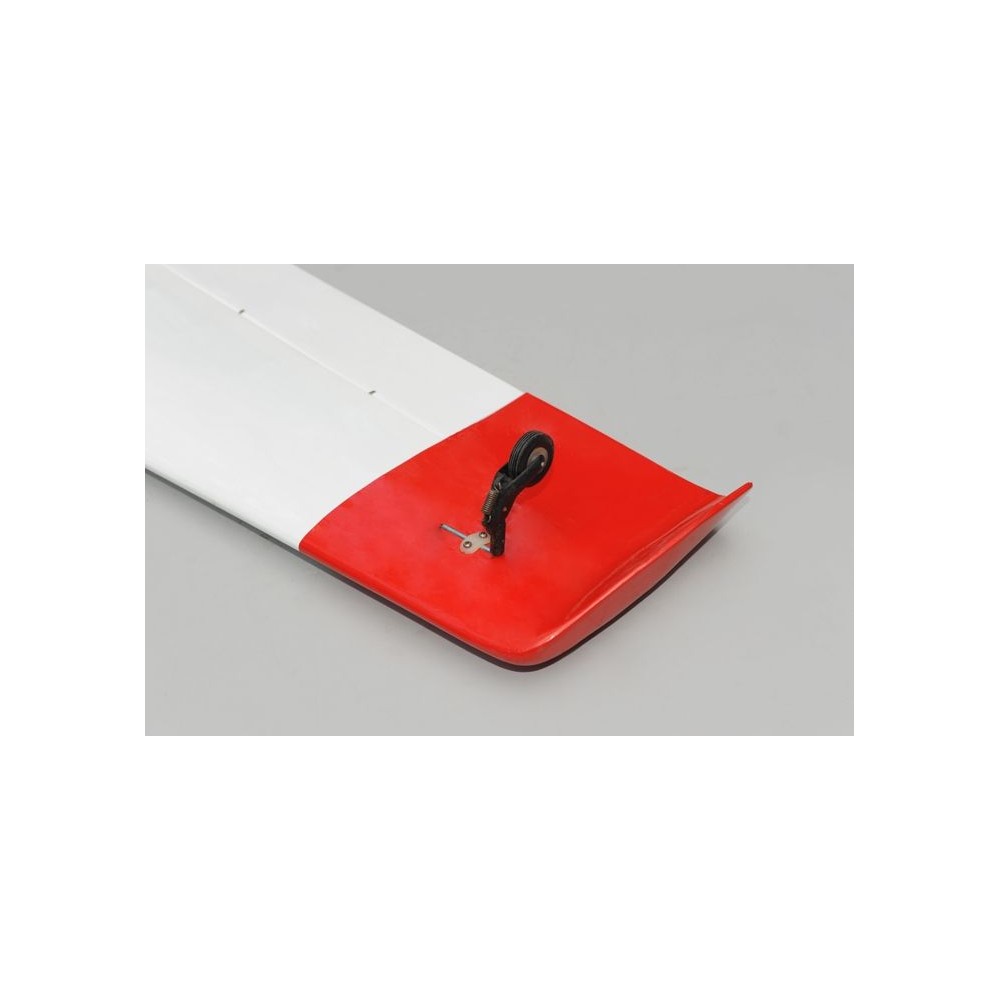 Čtyřdílné křídlo nasouvané z boku na spojku tvořenou dvěma robustními duralovými trubkami je klasické konstrukce s torzní skříní s balsovým tuhým potahem a potahem nažehlovací fólií Oracover. Vnější části křídel s křidélky jsou demontovatelné, spojují se trubkovými spojkami a zajišťují šrouby. Křidélka jsou ovládána dvěma servy s krátkými přímými táhly; profil křídla z řady HQ dává dostatek prostoru pro použití serv libovolné velikosti. Konstrukce křídla je připravena pro instalaci elektricky ovládaných aerodynamických brzd systému Schempp-Hirth o délce 440 mm (nejsou součástí stavebnice).