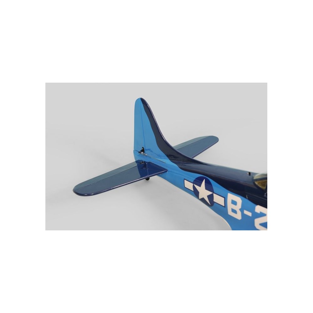 Polomaketa legendárního amerického námořního střemhlavého bombardéru pro dvoudobé motory 7,5-8,5 ccm, čtyřtakty 8-10 ccm nebo střídavé elektromotory třídy AXI 4120. Trup modelu je klasické celobalsové konstrukce s laminátovým motorovým krytem. Jednodílné křídlo s polosouměrným profilem je rovněž klasické konstrukce s torzní skříní; k trupu se upevňuje polyamidovými šrouby. Křidélka a klapky jsou ovládány vždy 2 nezávislými servy. Ocasní plochy jsou klasické celobalsové. Celý model je potažen nažehlovací fólií Oracover v kombinaci tmavě modré, světle modré a bílé. Model je dodáván se zatahovacím mechanickým podvozkem.