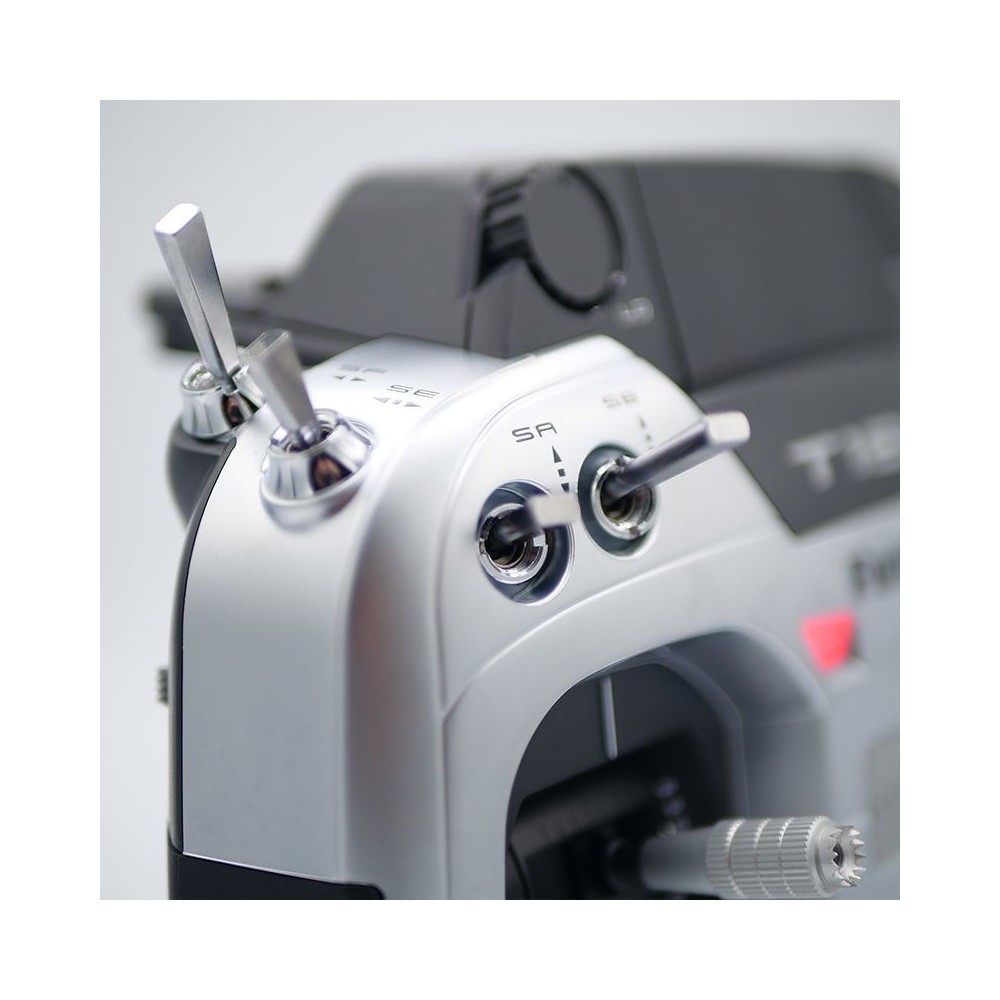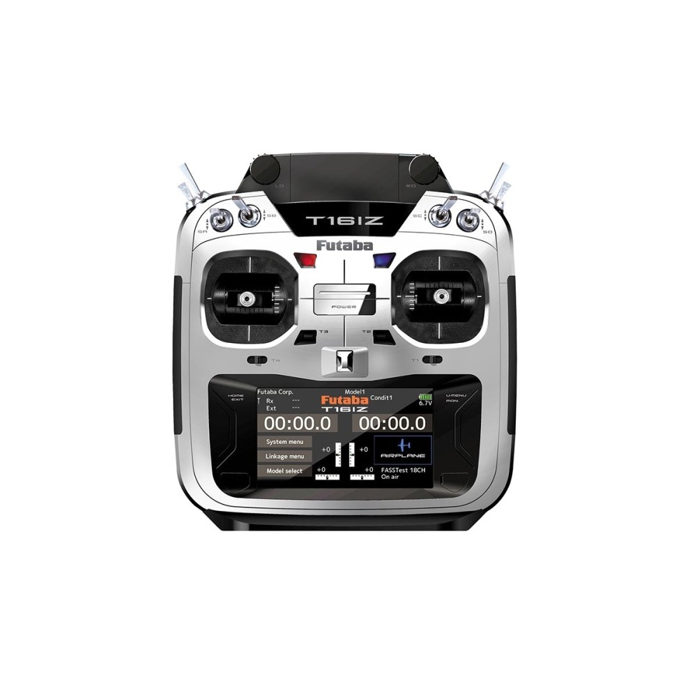 Vysílač T16IZ SUPER ve skříňce dokonale padnoucí do ruky je vybaven přesnými křížovými ovladači s nastavitelnou aretací/neutralizací, 8 přepínači, 2 posuvnými ovladači, 4 digitálními trimy a 2 otočnými proporcionálními ovladači. K programování slouží dvojice tlačítek a velký podsvícený barevný dotykový LCD displej zajišťující snadnou orientaci v intuitivním menu. T16IZ SUPER má paměť pro 30 modelů neomezeně rozšiřitelnou pomocí mikroSD karty a širokou škálu pokročilých mixových funkcí pro akrobatická letadla, větroně, vrtulníky a multikoptéry. Kromě zobrazení telemetrických dat na displeji je k dispozici hlasový výstup telemetrie v zásuvce pro sluchátko (není součástí soupravy). T16IZ SUPER je rovněž vybaven zásuvkou učitel-žák a zásuvkou pro programování a nastavování S.BUS serv a gyroskopických systémů CGY755/CGY760R nebo GYA553. USB datová zásuvka na horní straně vysílače možňuje používat T16IZ SUPER po připojení k PC USB kabelem jako ovladač pro RC simulátor bez potřeby dodatečného USB rozhraní.