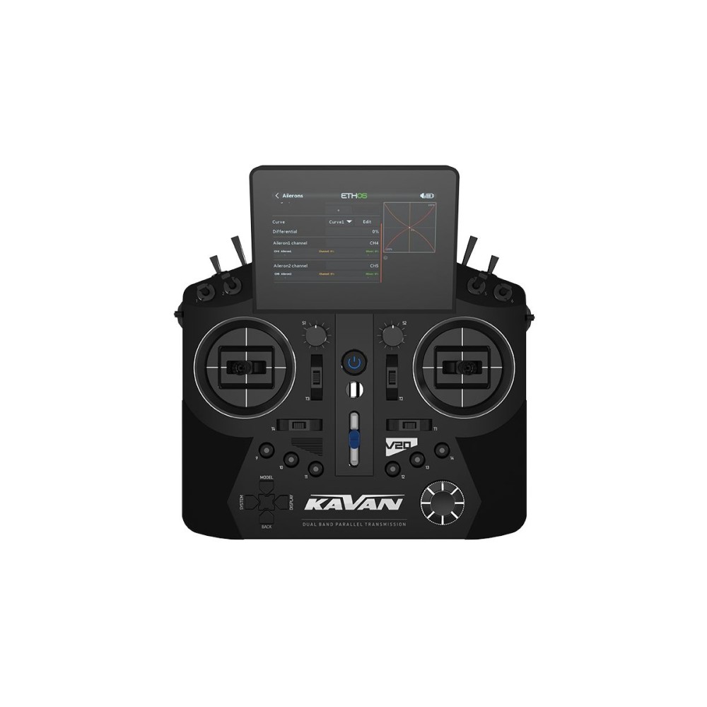 Pro ovládání dalších funkcí slouží 6 třípolohových přepínačů, 2 dvoupolohové (1 momentový) přepínače, 2 postranní otočné ovladače, 6 uživatelsky programovatelných tlačítek (vpředu) a dvě momentová tlačítka (vzadu). Vestavěný 6osý gyroskopický senzor lze nastavit pro ovládání kanálu plynu, řízení výchylek mixu a slouží i pro probuzení displeje. Páčky trimů a knoflíky jsou celokovové, precizně obráběné na CNC. Návrh rozmístění ovladačů a ergonomie těla je výsledkem několika desítek hodin testování a ladění týmem KAVAN.
