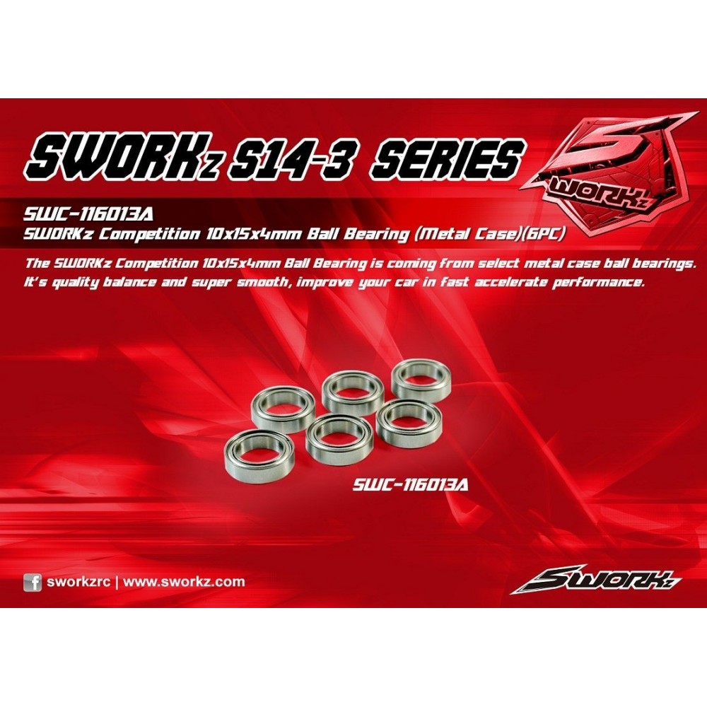 SWORKz Competition Professional kuličkové ložiska 10x15x4mm, kovové prachovky, 6 ks.