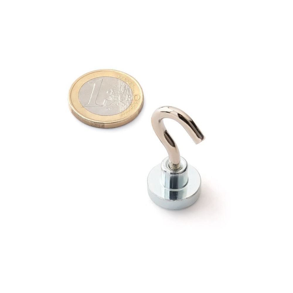 Magnetický hák v kovovém pouzdře o průměru 16 mm se hodí pro rychlé přicvaknutí ke kovové ploše boku lednice, na kovovou zárubeň, ke konstrukci ve skladu i na veletržním stánku, bez vrtání, bez lepení.