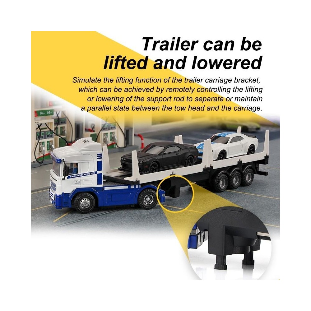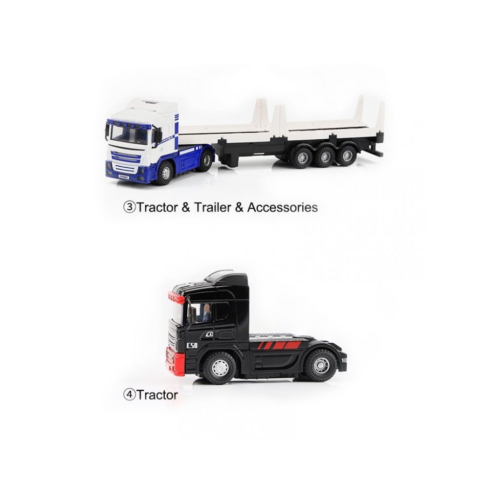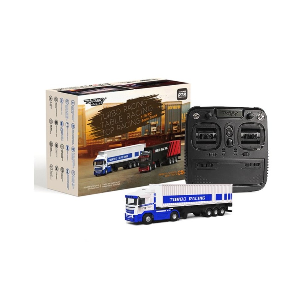 RTR sada 1:76 RC nákladního auta s přívěsem a s 10CH pákovým vysílačem. Plně proporcionální řízení, oddělené vyměnitelné baterie s dobou jízdy až 40 minut. Kompletní osvětlení a zvukové efekty.