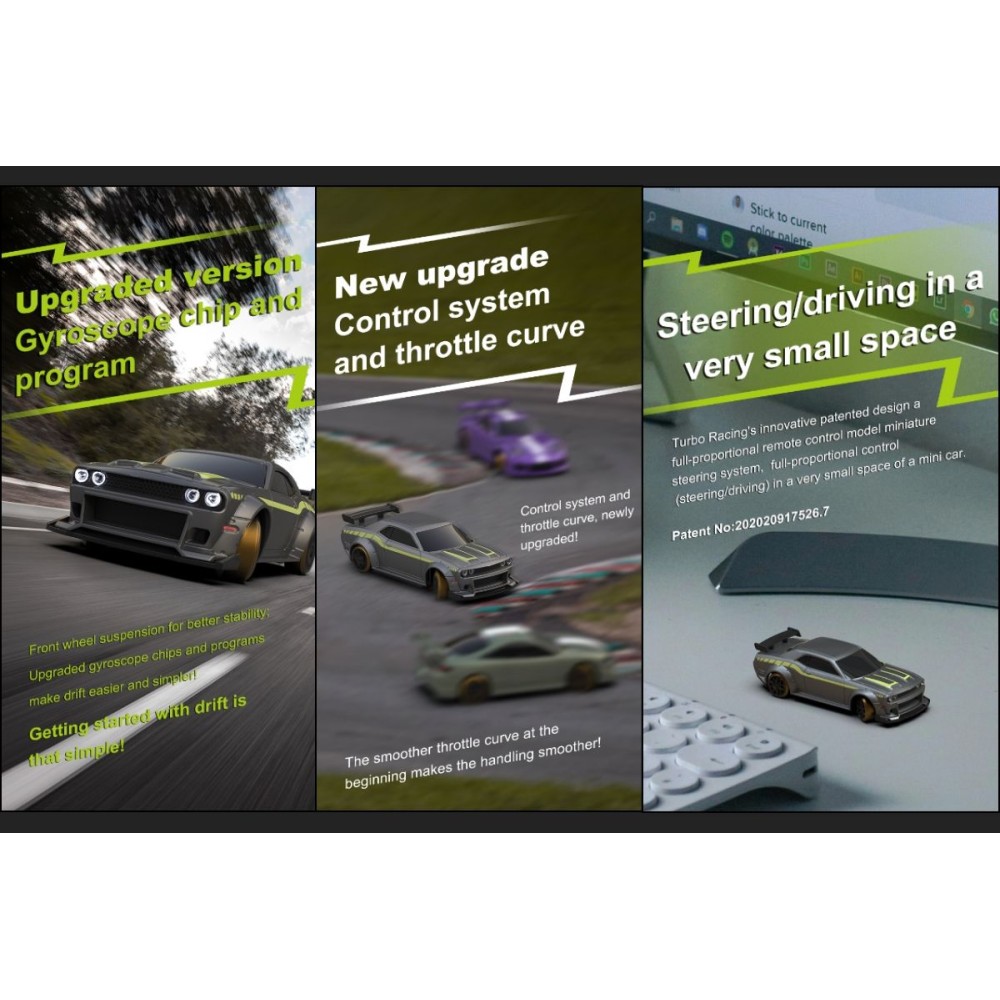 Představujeme první plně proporcionální dálkově ovládané auto velikosti prstu na světě - RC auto 1:76 Turbo Racing. Poprvé v hobby průmyslu s rádiovým ovládáním lze RC vůz takové velikosti ovládat s takovou přesností a jemností. Díky zcela novému patentovanému systému řízení potenciometrem, který je nejmenší svého druhu, můžete ovládat vozidlo přesně tak, jak chcete.