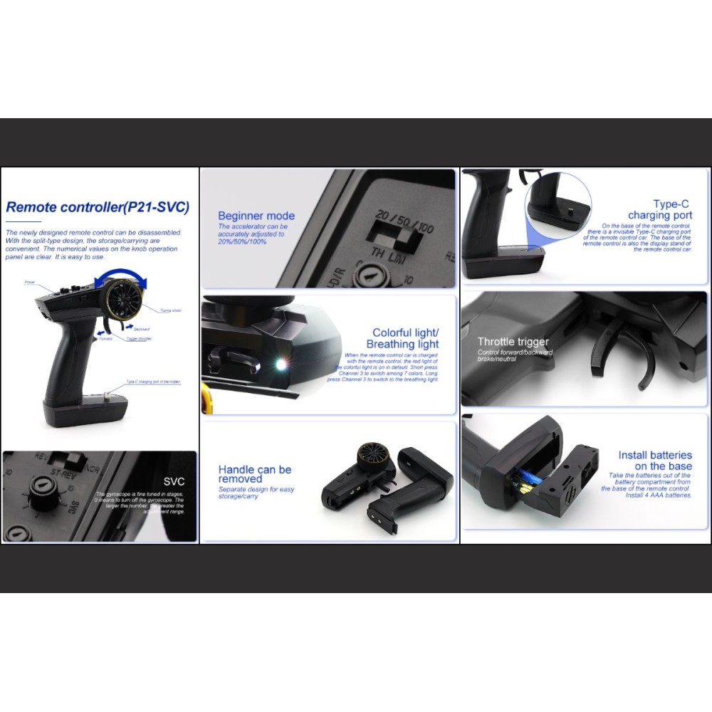 - Rozložitelný čtyřkanálový vysílač dálkového ovládání Turbo Racing P21-SVC