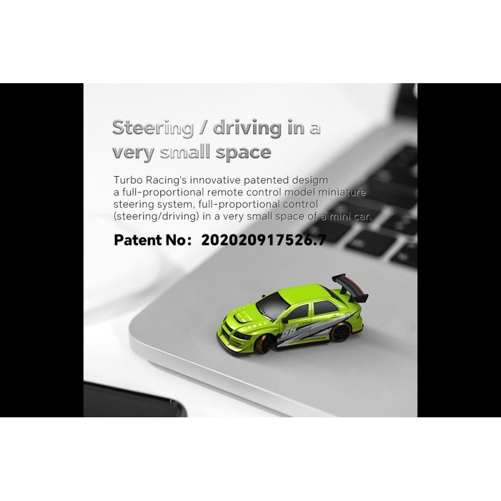 Představujeme první plně proporcionální dálkově ovládané auto velikosti prstu na světě - RC auto 1:76 Turbo Racing. Poprvé v hobby průmyslu s rádiovým ovládáním lze RC vůz takové velikosti ovládat s takovou přesností a jemností. Díky zcela novému patentovanému systému řízení potenciometrem, který je nejmenší svého druhu, můžete ovládat vozidlo přesně tak, jak chcete.
