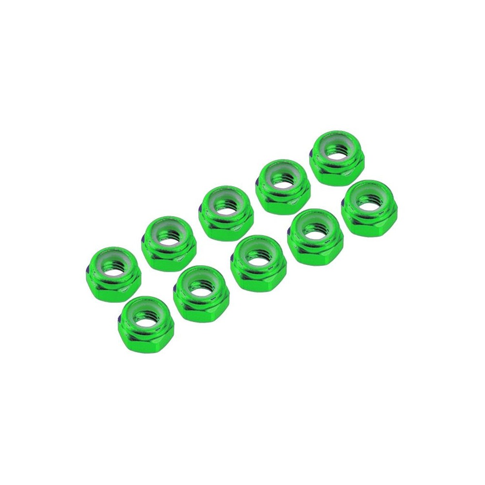 M4/4 mm hliníkové samojistné matičky zelené, 10 ks.