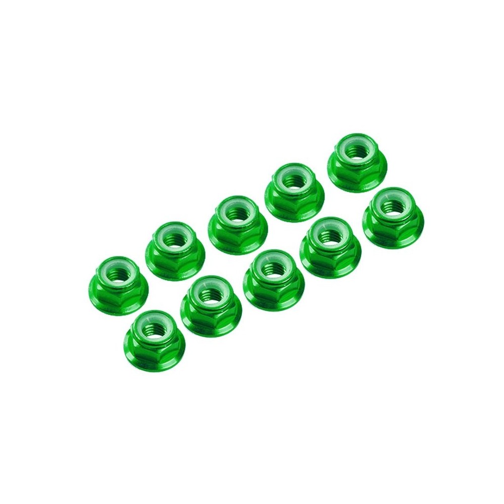 M4/4 mm hliníkové samojistné matičky s osazením zelené, 10 ks.