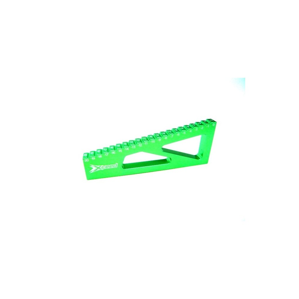 Lehký hliníkový nástroj pro měření propadu ramen. Laserem gravírované s výškou od 0 do -20 v krocích po 1mm. Na boku vyryté logo Xceed.