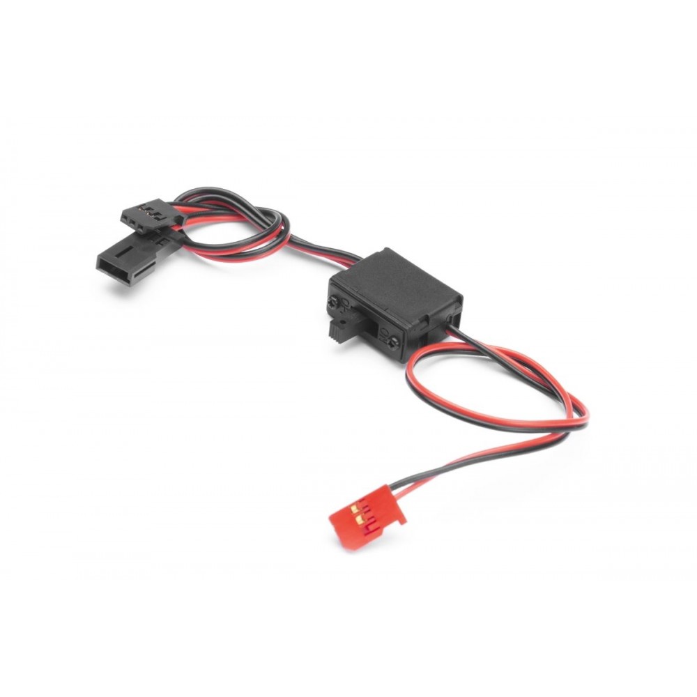 Robustní páčkový vypínač pro přijímačové akumulátory s nabíjecím kabelem. Servokonektory Futaba.