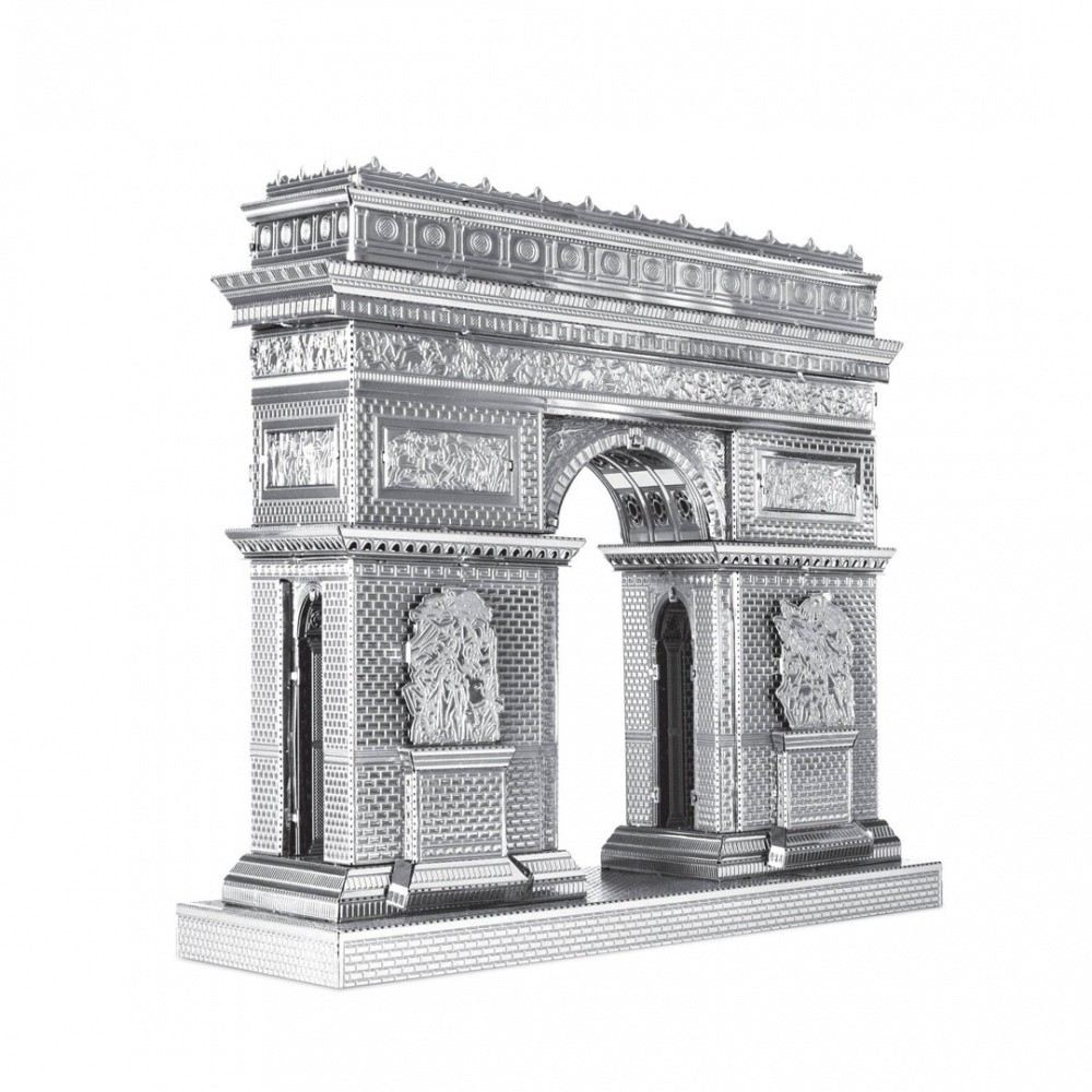 Luxusní 3D ocelová stavebnice Arc de Triomphe ICX005. 2 kovové destičky (10 x 20 cm), počet dílů: 41.
