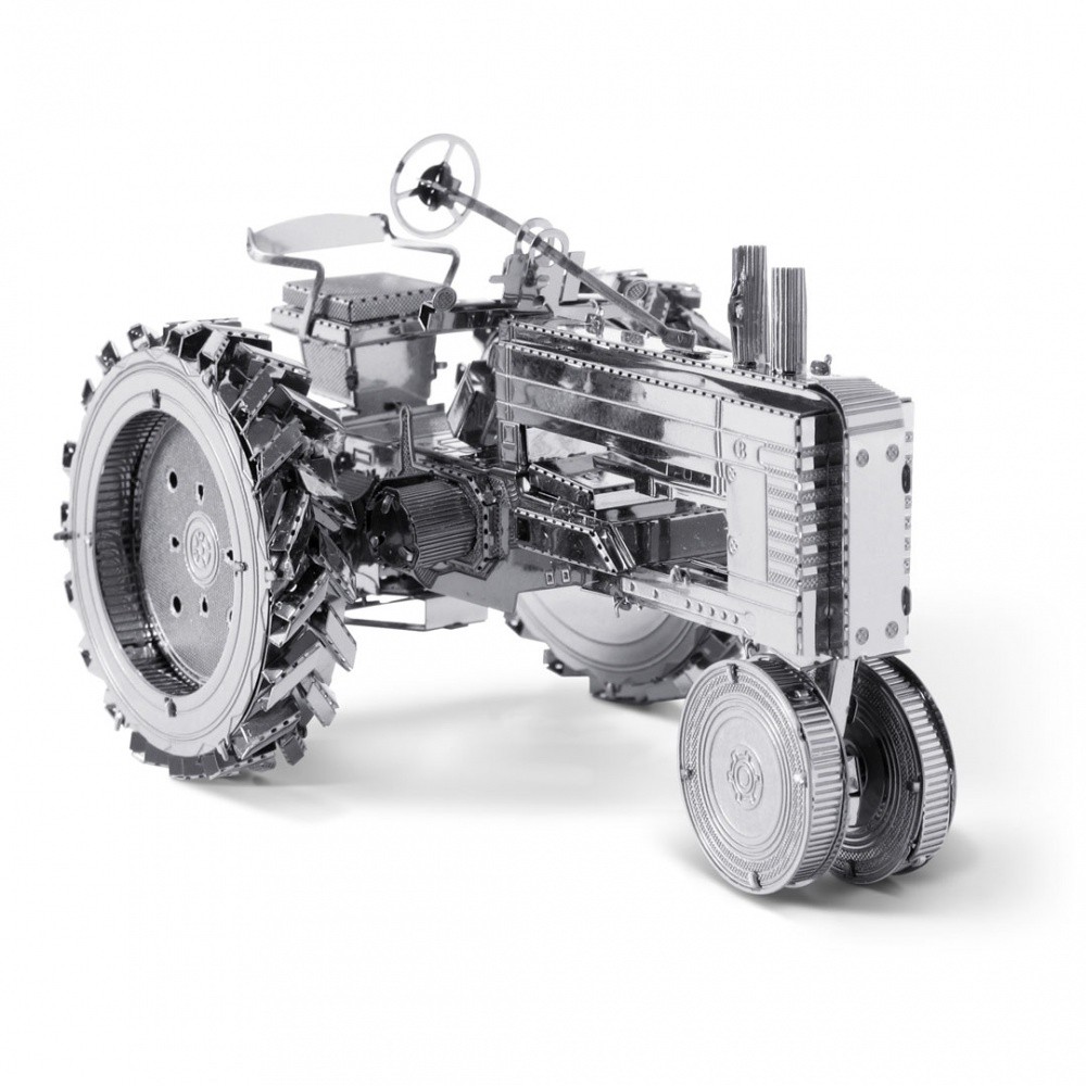 Luxusní 3D ocelová stavebnice Traktor John Deere Model B MMS052. 2 kovové destičky (11 x 11 cm). Počet dílů: 56.