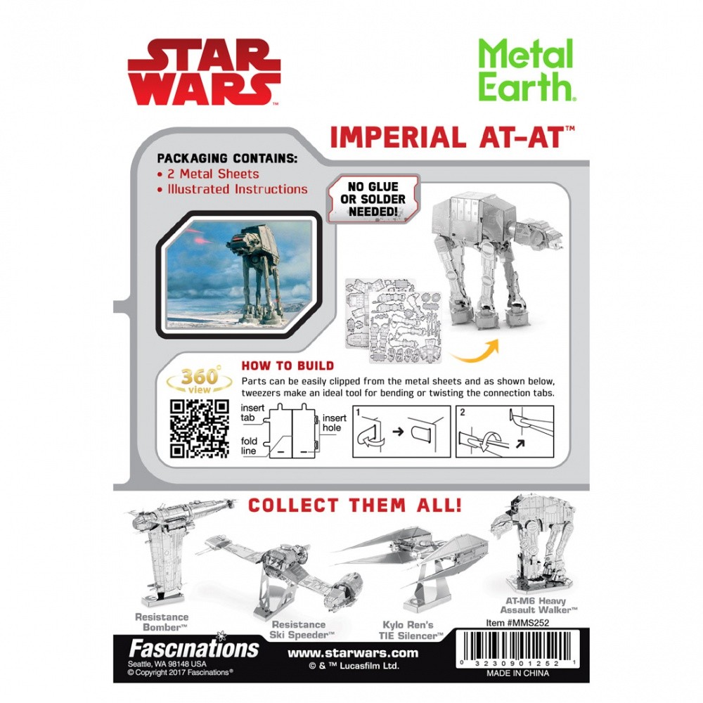 Luxusní 3D ocelová stavebnice Prémiová řada Star Wars - AT-AT MMS252. 2 kovové destičky (11 x 11 cm), počet dílů: 45.