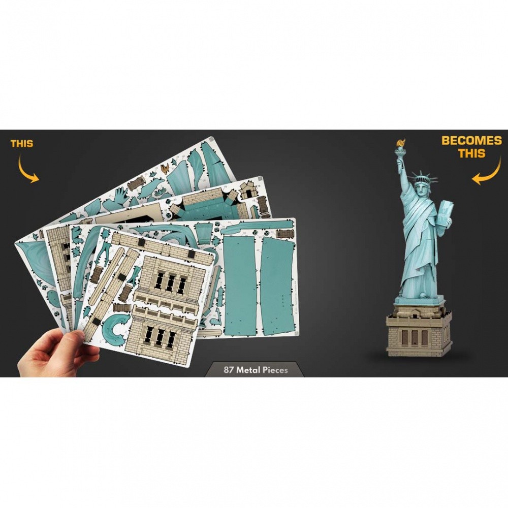 Luxusní 3D ocelová stavebnice Prémiová série- Socha svobody.3,5 kovových destiček (11 x 11 cm), počet dílů: 87.
