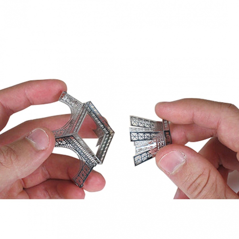 Luxusní 3D ocelová stavebnice Eiffelova věž MMS016. 1 kovová destička (11 x 11 cm), počet dílů: 13.