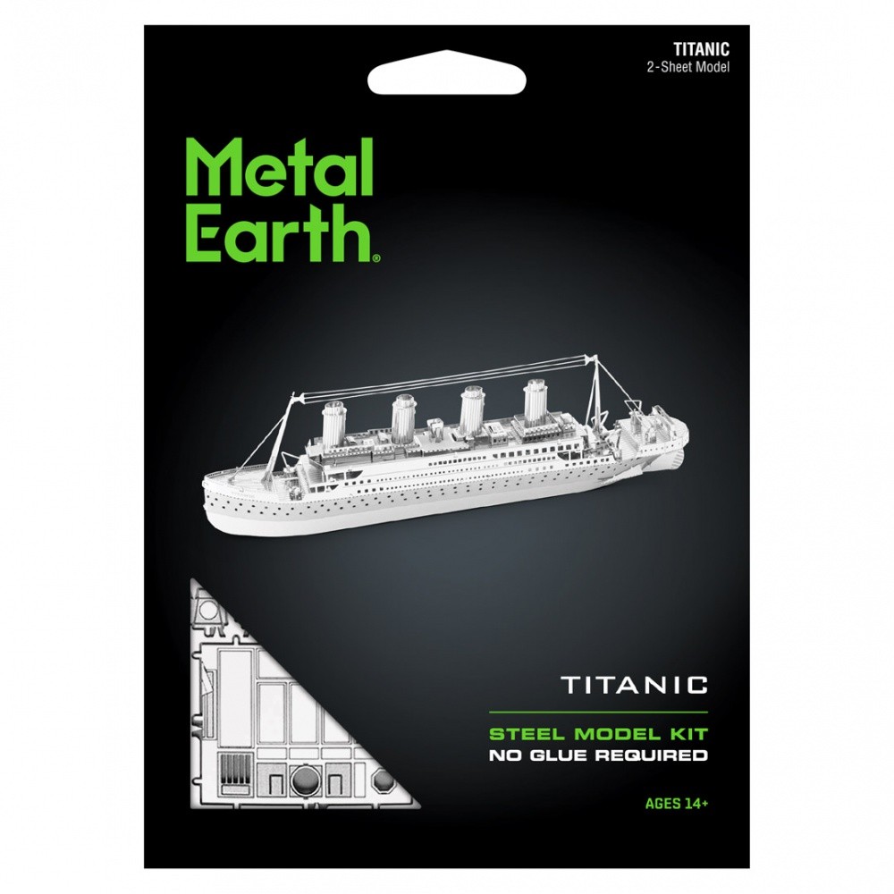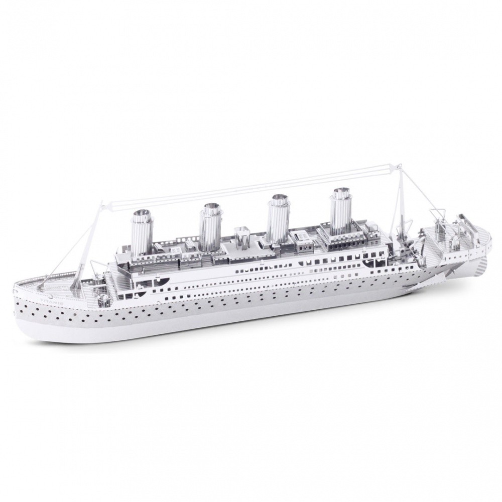 Luxusní 3D ocelová stavebnice Titanic MMS030. 2 kovové destičky (11 x 11 cm), počet dílů: 65.