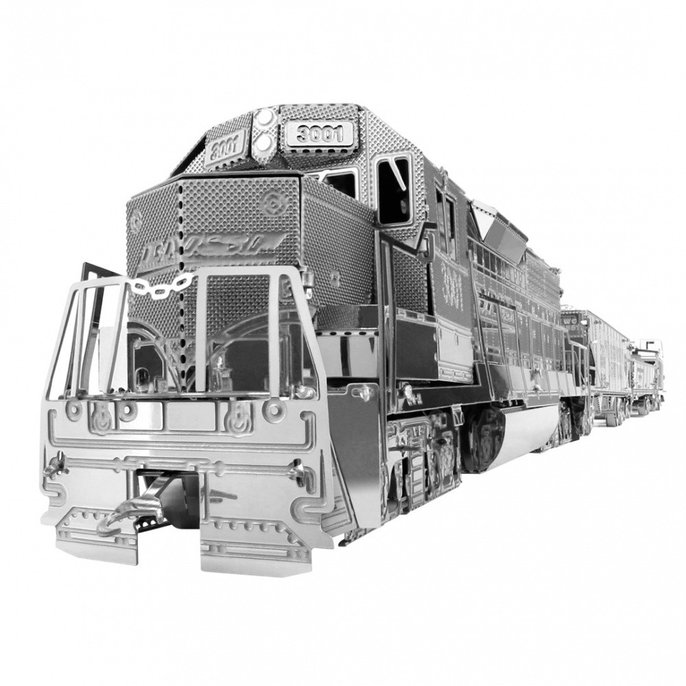 Luxusní 3D ocelová stavebnice Boxová verze nákladního vlaku. 5 kovových destiček (11 x 11 cm), počet dílů: 185.