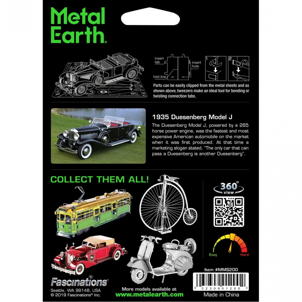 Luxusní 3D ocelová stavebnice Duesenberg II SJ 1935. 2,5 kovové destičky (11 x 11 cm), počet dílů: 89.