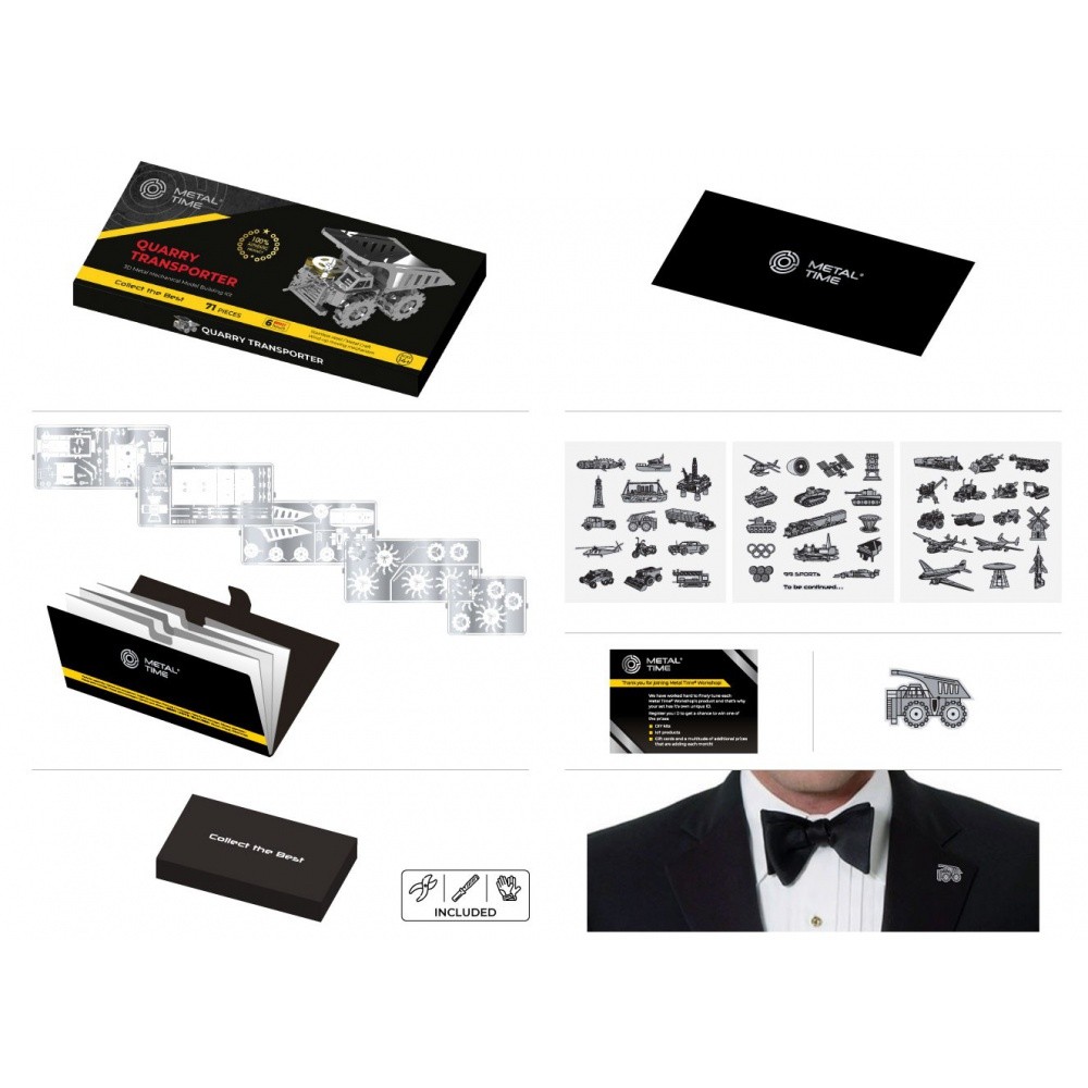 Luxusní 3D ocelová stavebnice Důlní vůz Quarry Transporter- 71 dílů. Včetně příslušenství (kleště, pilník, rukavice, leštící hadřík). Sběratelská kolekce.