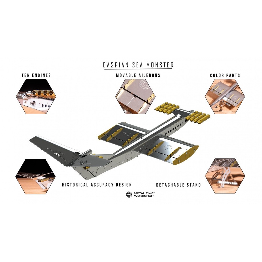 Caspian Sea Monster byl testován na Kaspickém moři a jeho design kombinuje prvky kluzáku, letadla a lodi. Tento unikátní model nabízí nejen estetický zážitek, ale také edukativní hodnotu, jelikož poskytuje detailní vhled do technologických inovací své doby.