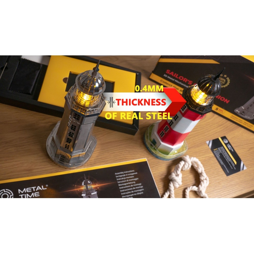 Díky vysoce kvalitní nerezové oceli a preciznímu zpracování každého dílu, vám tento model nabízí nejen estetický zážitek, ale i výzvu v podobě složení jeho komplikované struktury. S rotujícím LED světlem, které simuluje skutečný maják, přidá tento model kouzlo a atmosféru pravé námořní scény kdekoliv ho umístíte.