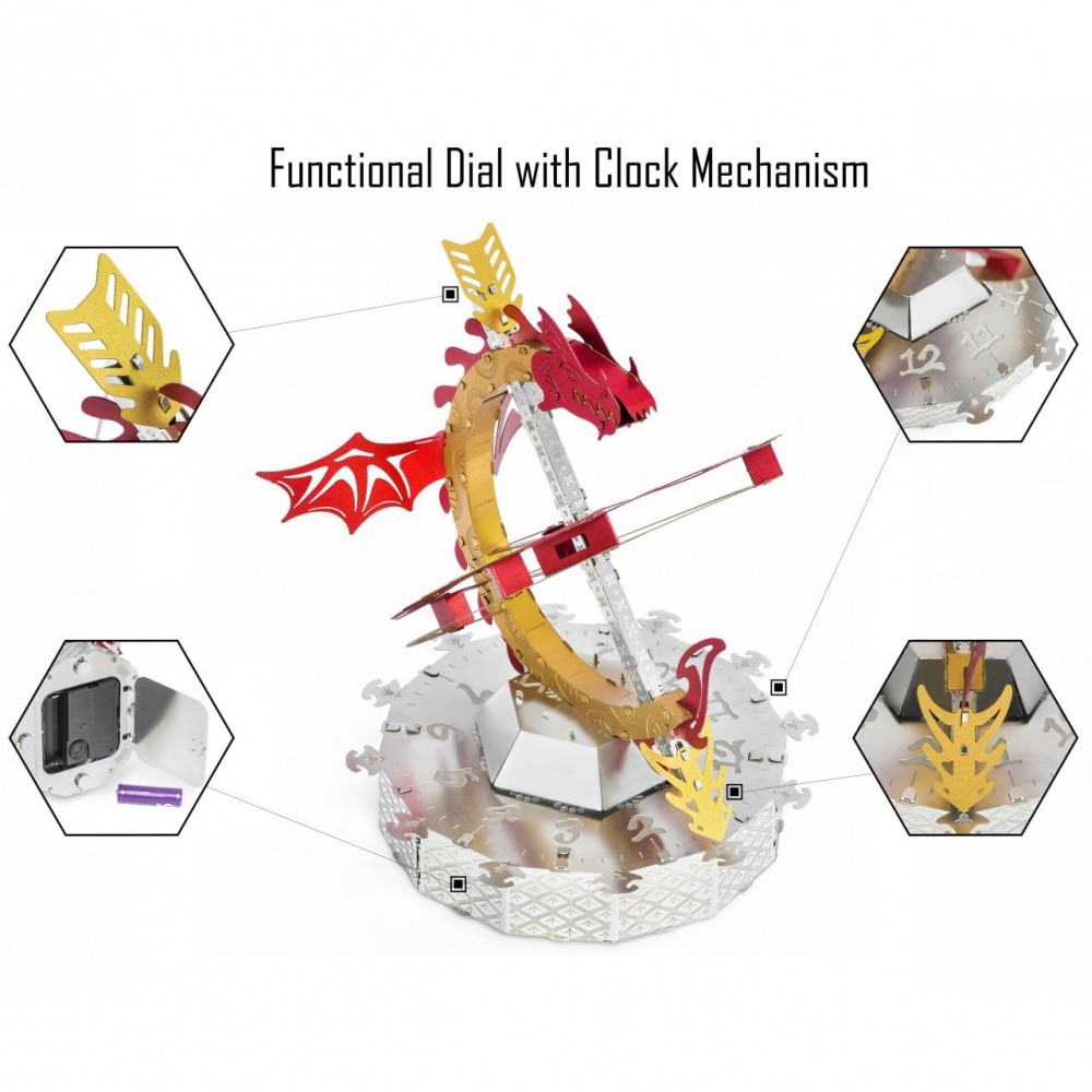 Naše stavebnice je nejen estetickým zážitkem, ale také výzvou pro technickou kreativitu. Můžete se těšit na hodiny strávené sestavováním tohoto mistrovského díla, které vám přinese radost a uspokojení z dokončené práce. A co víc, "Sun Chaser" je vybaven elektronickým hodinovým strojem napájeným baterií, který zajišťuje pohyb draka po hodinové ploše ukazující čas. Stane se tak nejen dekorativním prvkem, ale i funkčním kouskem vašeho interiéru.