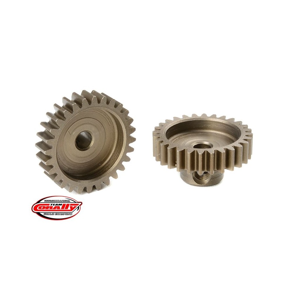 Krátké provedení, materiál tvrzená ocel, 28 zubů, modul ozubení 0.6M. Pro hřídel motoru o průměru 3.17 mm (1/8 in). Pastorky TEAM CORALLY jsou vyráběny frézováním a následně tvrzeny, čímž je zajištěna vysoká přesnost ozubení. Všechny pastorky TEAM CORALLY jsou vyrobeny v EU.