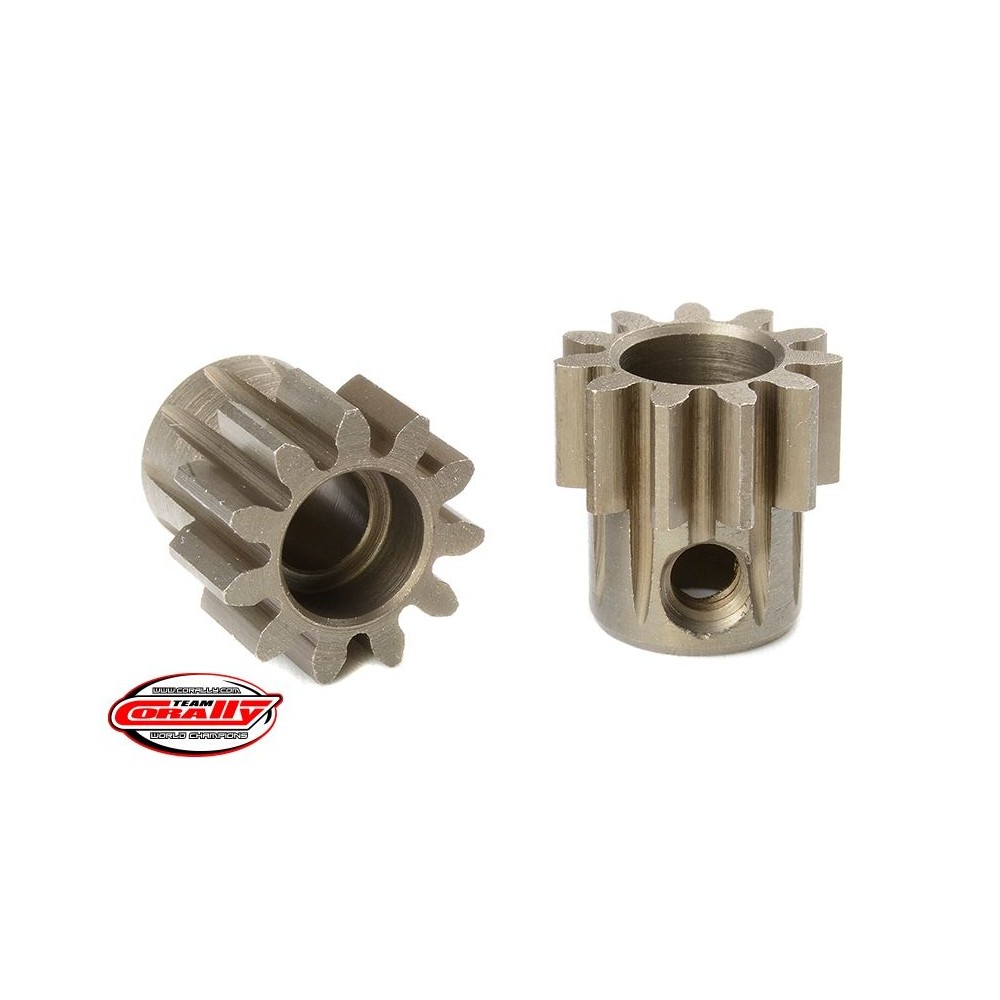 Krátké provedení, materiál tvrzená ocel, 11 zubů, modul ozubení M1.0. Pro hřídel motoru o průměru 5,0 mm. Pastorky TEAM CORALLY jsou vyráběny frézováním a následně tvrzeny, čímž je zajištěna vysoká přesnost ozubení. Všechny pastorky TEAM CORALLY jsou vyrobeny v EU.