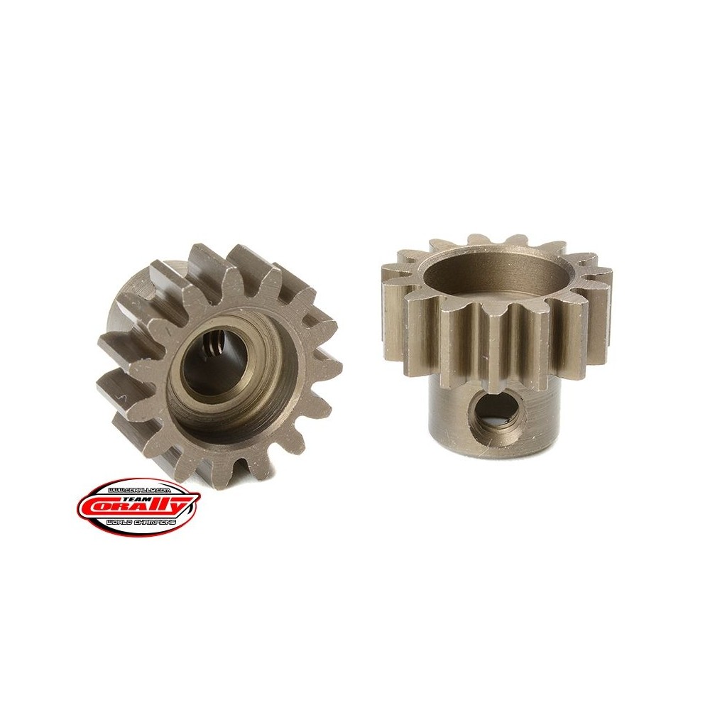 Krátké provedení, materiál tvrzená ocel, 15 zubů, modul ozubení M1.0. Pro hřídel motoru o průměru 5,0 mm. Pastorky TEAM CORALLY jsou vyráběny frézováním a následně tvrzeny, čímž je zajištěna vysoká přesnost ozubení. Všechny pastorky TEAM CORALLY jsou vyrobeny v EU.