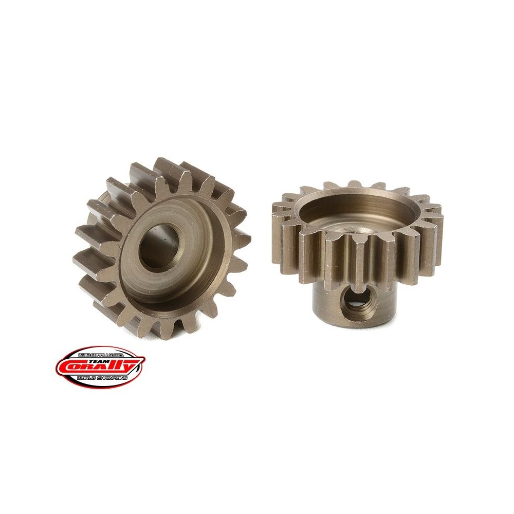 Krátké provedení, materiál tvrzená ocel, 18 zubů, modul ozubení M1.0. Pro hřídel motoru o průměru 5,0 mm. Pastorky TEAM CORALLY jsou vyráběny frézováním a následně tvrzeny, čímž je zajištěna vysoká přesnost ozubení. Všechny pastorky TEAM CORALLY jsou vyrobeny v EU.