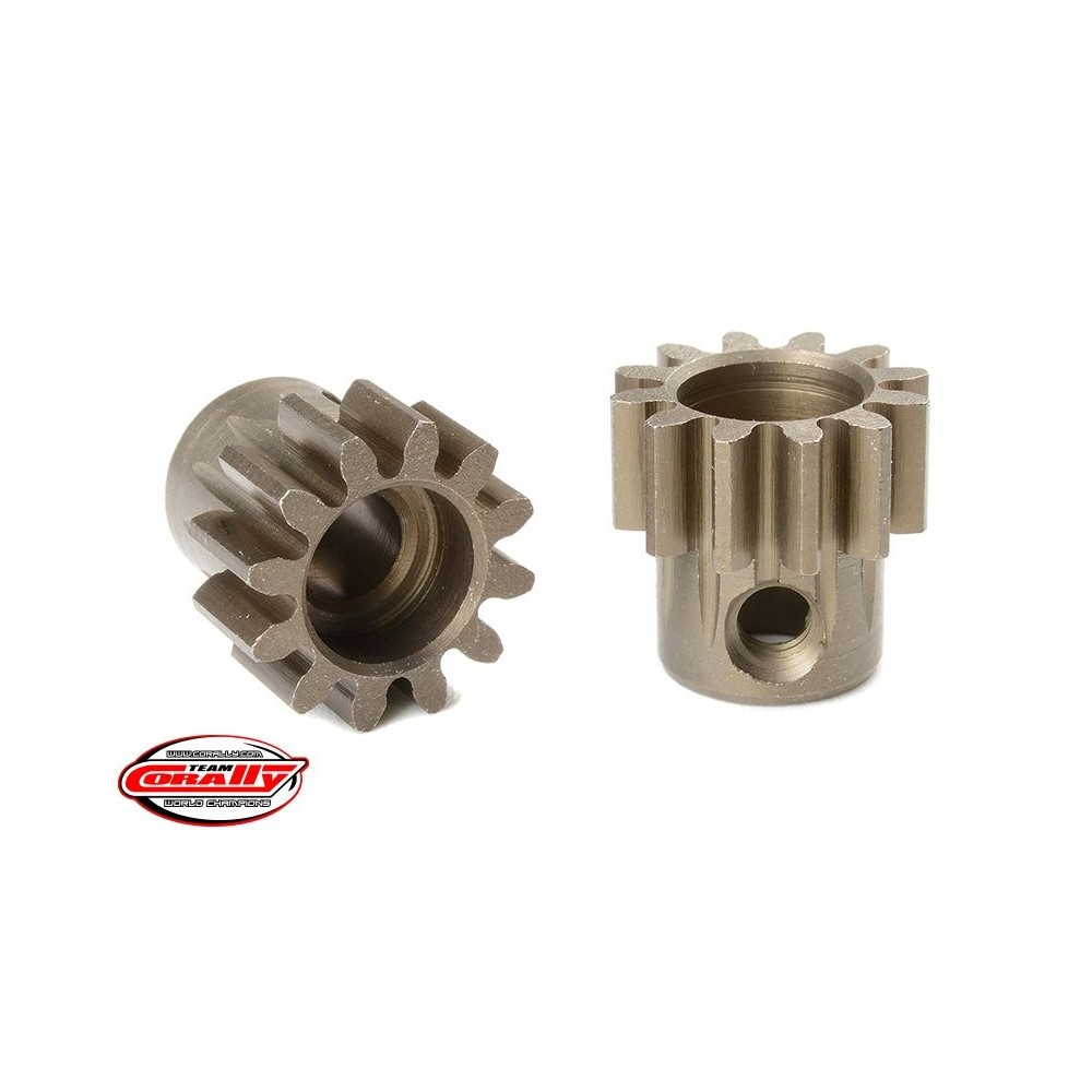 Krátké provedení, materiál tvrzená ocel, 12 zubů, modul ozubení M1.0. Pro hřídel motoru o průměru 5,0 mm. Pastorky TEAM CORALLY jsou vyráběny frézováním a následně tvrzeny, čímž je zajištěna vysoká přesnost ozubení. Všechny pastorky TEAM CORALLY jsou vyrobeny v EU.