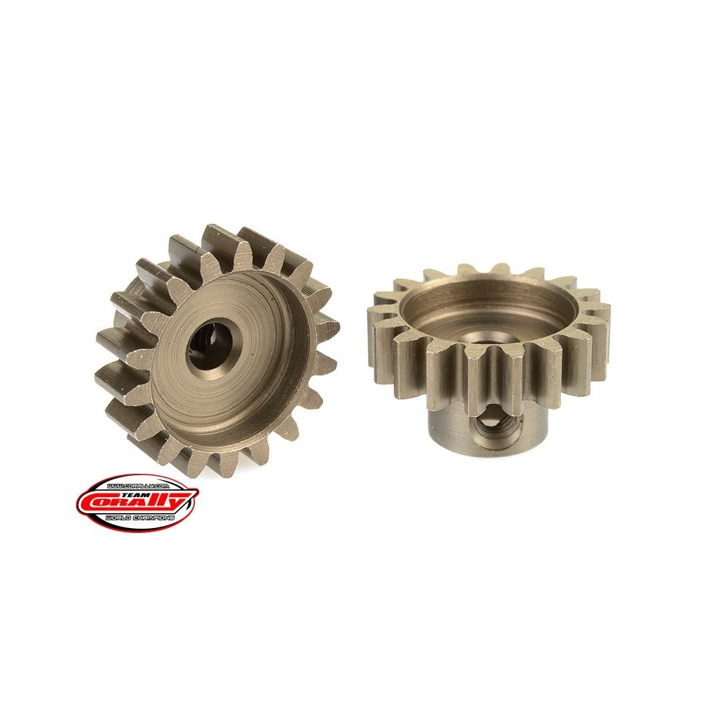 Krátké provedení, materiál tvrzená ocel, 18 zubů, modul ozubení 32DP. Pro hřídel motoru o průměru 3.17 mm (1/8 in). Pastorky TEAM CORALLY jsou vyráběny frézováním a následně tvrzeny, čímž je zajištěna vysoká přesnost ozubení. Všechny pastorky TEAM CORALLY jsou vyrobeny v EU.