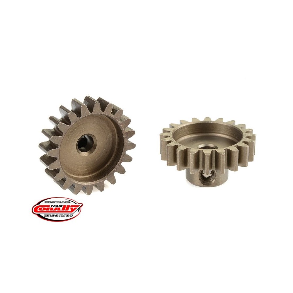Krátké provedení, materiál tvrzená ocel, 20 zubů, modul ozubení 32DP. Pro hřídel motoru o průměru 3.17 mm (1/8 in). Pastorky TEAM CORALLY jsou vyráběny frézováním a následně tvrzeny, čímž je zajištěna vysoká přesnost ozubení. Všechny pastorky TEAM CORALLY jsou vyrobeny v EU.