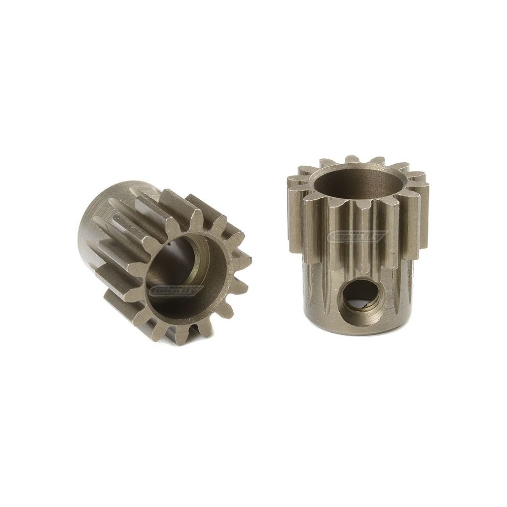 Krátké provedení, materiál tvrzená ocel, 14 zubů, modul ozubení 32DP. Pro hřídel motoru o průměru 5.00 mm. Pastorky TEAM CORALLY jsou vyráběny frézováním a následně tvrzeny, čímž je zajištěna vysoká přesnost ozubení. Všechny pastorky TEAM CORALLY jsou vyrobeny v Evropě.