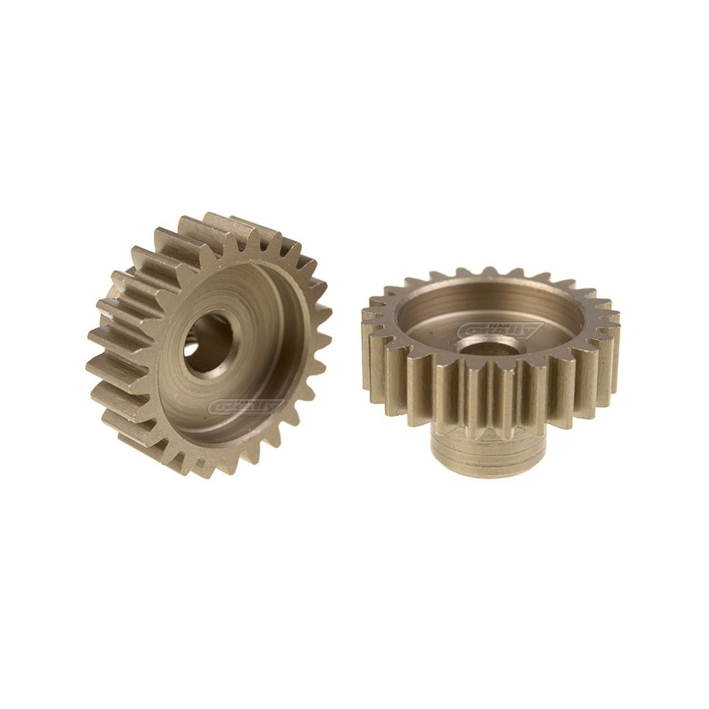 Krátké provedení, materiál tvrzená ocel, 25 zubů, modul ozubení 32DP. Pro hřídel motoru o průměru 5.00 mm. Pastorky TEAM CORALLY jsou vyráběny frézováním a následně tvrzeny, čímž je zajištěna vysoká přesnost ozubení. Všechny pastorky TEAM CORALLY jsou vyrobeny v Evropě.