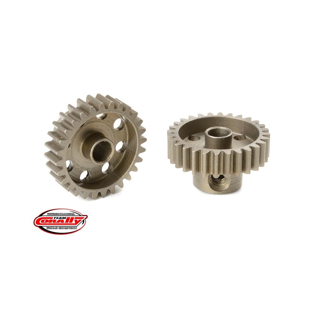 Krátké provedení, materiál tvrzená ocel, 28 zubů, modul ozubení 48DP. Pro hřídel motoru o průměru 3.17 mm (1/8 in). Pastorky TEAM CORALLY jsou vyráběny frézováním a následně tvrzeny, čímž je zajištěna vysoká přesnost ozubení. Všechny pastorky TEAM CORALLY jsou vyrobeny v EU.