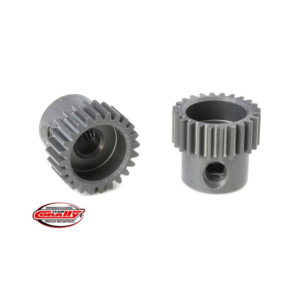 Krátké provedení, materiál tvrzený hliník 7075 T6, 24 zubů, modul ozubení 64DP. Pro hřídel motoru o průměru 3.17 mm (1/8 in). Pastorky TEAM CORALLY jsou vyráběny frézováním a následně tvrzeny, čímž je zajištěna vysoká přesnost ozubení. Všechny pastorky TEAM CORALLY jsou vyrobeny v EU.