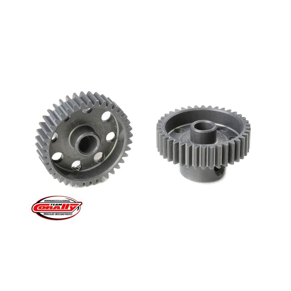 Krátké provedení, materiál tvrzený hliník 7075 T6, 38 zubů, modul ozubení 64DP. Pro hřídel motoru o průměru 3.17 mm (1/8 in). Pastorky TEAM CORALLY jsou vyráběny frézováním a následně tvrzeny, čímž je zajištěna vysoká přesnost ozubení. Všechny pastorky TEAM CORALLY jsou vyrobeny v EU.