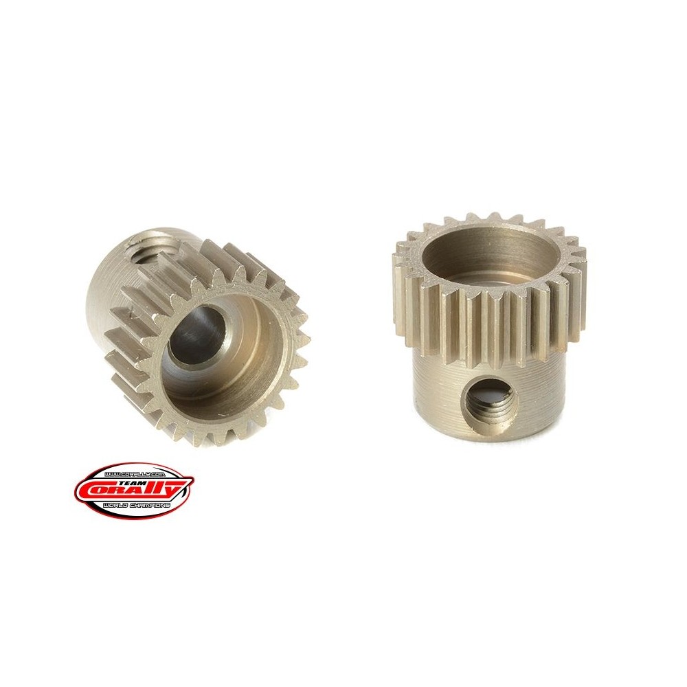 Krátké provedení, materiál tvrzená ocel, 23 zubů, modul ozubení 64DP. Pro hřídel motoru o průměru 3.17 mm (1/8 in). Pastorky TEAM CORALLY jsou vyráběny frézováním a následně tvrzeny, čímž je zajištěna vysoká přesnost ozubení. Všechny pastorky TEAM CORALLY jsou vyrobeny v EU.