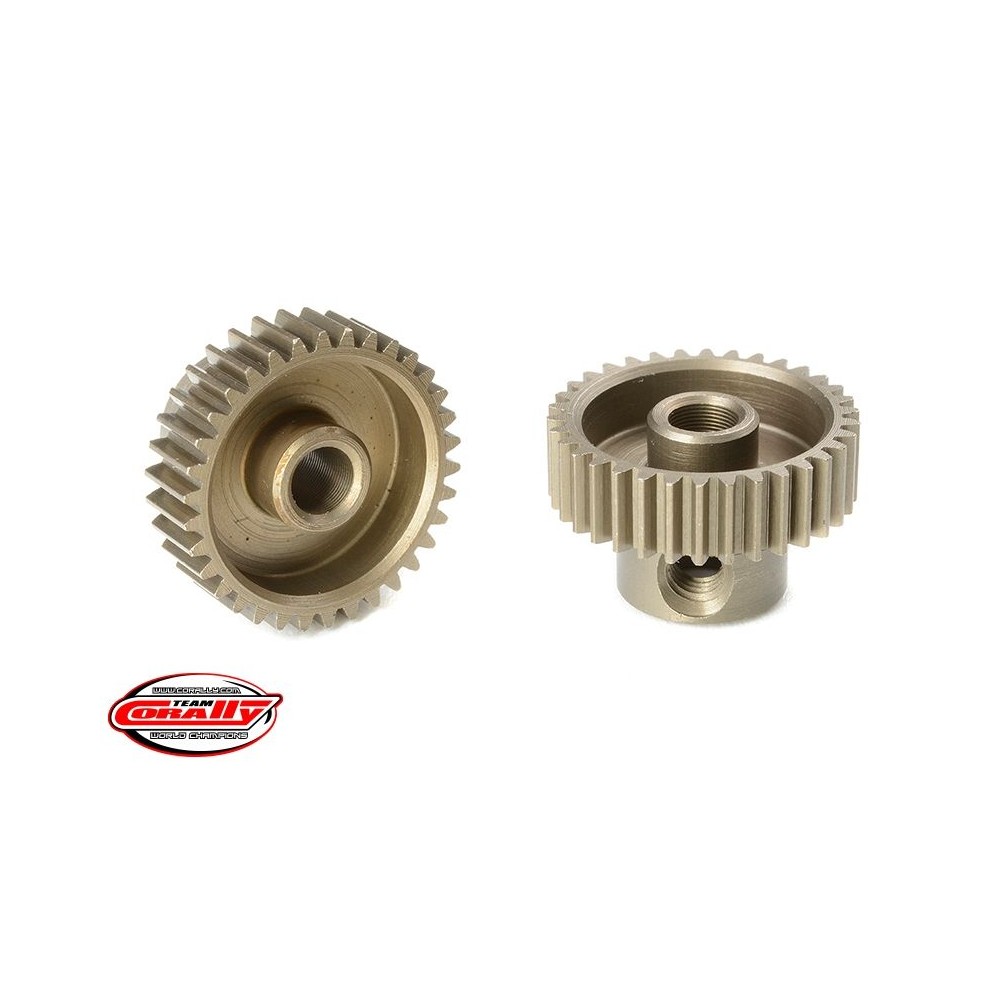 Krátké provedení, materiál tvrzená ocel, 34 zubů, modul ozubení 64DP. Pro hřídel motoru o průměru 3.17 mm (1/8 in). Pastorky TEAM CORALLY jsou vyráběny frézováním a následně tvrzeny, čímž je zajištěna vysoká přesnost ozubení. Všechny pastorky TEAM CORALLY jsou vyrobeny v EU.