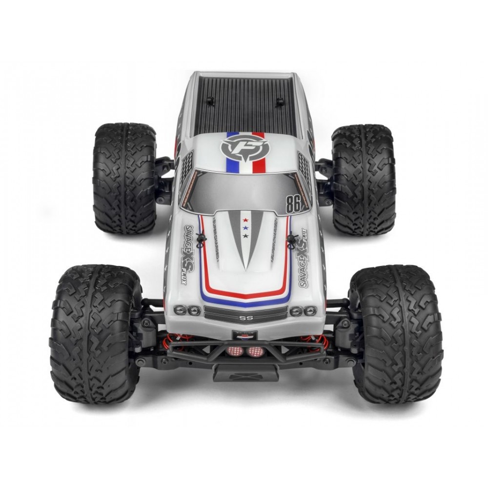 Savage XS je v měřítku 1:14-16 a je poháněný střídavým motorem Flux MMH-4000KV a voduvzdorným regulátorem Flux EMH-3S. Set obsahuje RC soupravou 2,4Ghz, lakovanou karoserii a sestavený model.