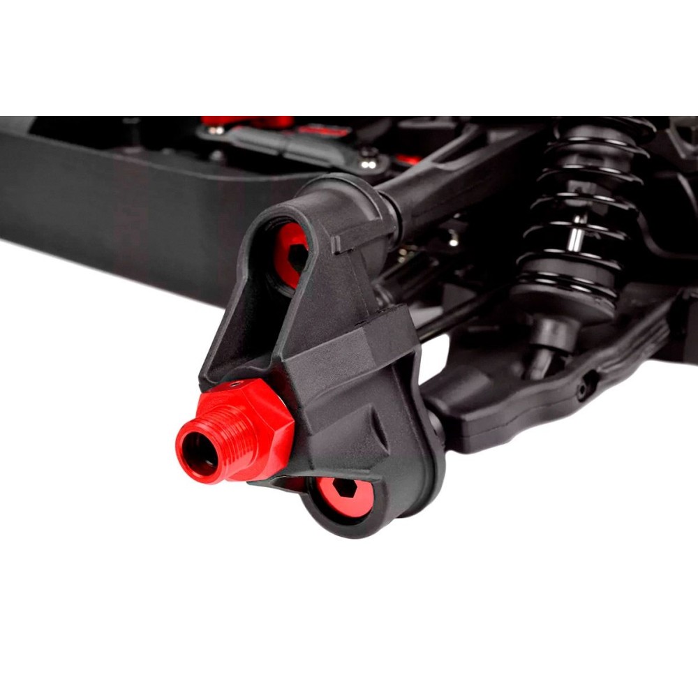 Jeho hybridní hliníkový držák motoru nabízí tři polohy motoru pro přesné nastavení vůle pastorku. Zesílené hnací ústrojí s ocelovými unašeči a robustním hlavním převodovým převodem 52T zajišťuje dlouhou životnost. Široké těhlice z Kagamy a Sketeru dodávají stabilitu a schopnosti v terénu, zatímco nové wheelie kolečko pomáhá zvládat obrovský výkon. Od střídavého motoru Kuron 725 až po regulátor Torox 135 - každá součástka přispívá ke vzrušující maximální rychlosti přes 80 km/h. Vysílač CT2S 2,4 GHz, systém vyztužení podvozku a křídlo s vysokou přítlačnou silou doplňují balíček, takže Punisher4 je skutečným důkazem odkazu inovací a výkonu firmy Team Corally.