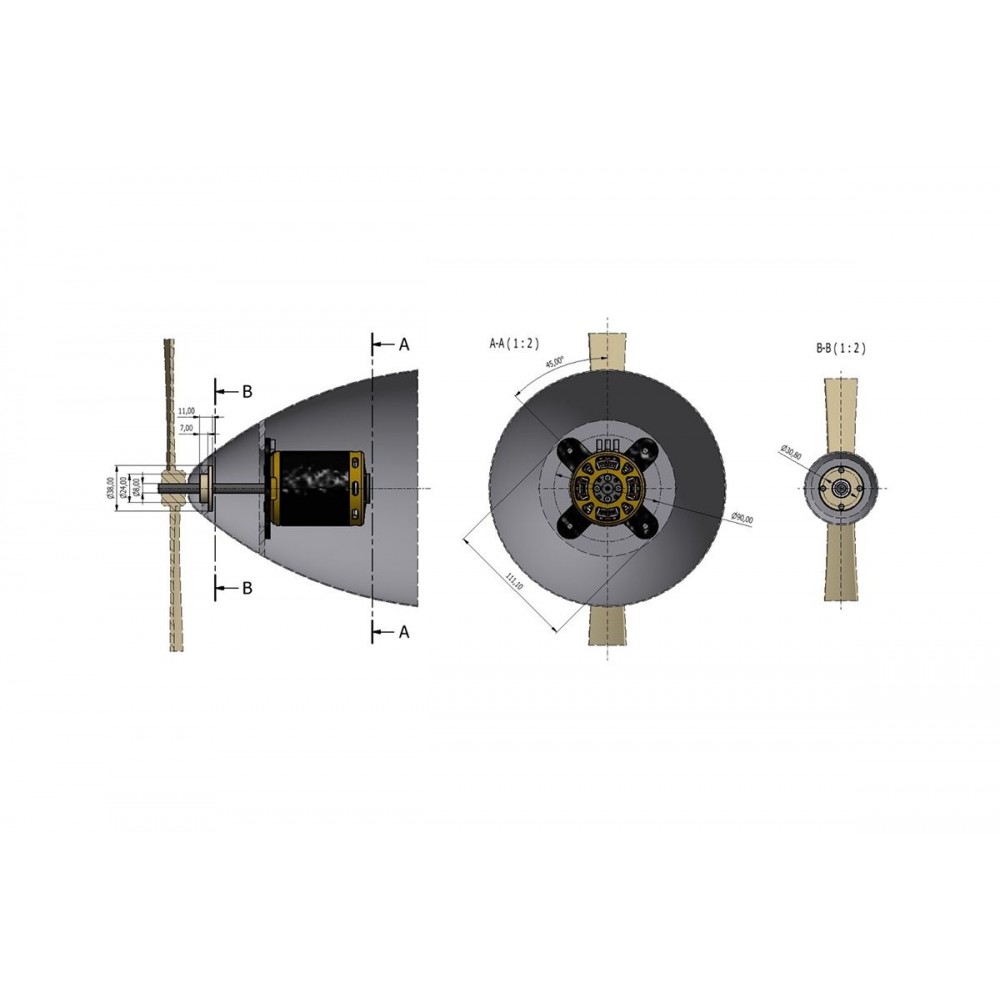 Střídavý elektromotor o hmotnosti 550g. Otáčky na volt: 220ot., doporučená vrtule: 19x10 , 20x8 ....