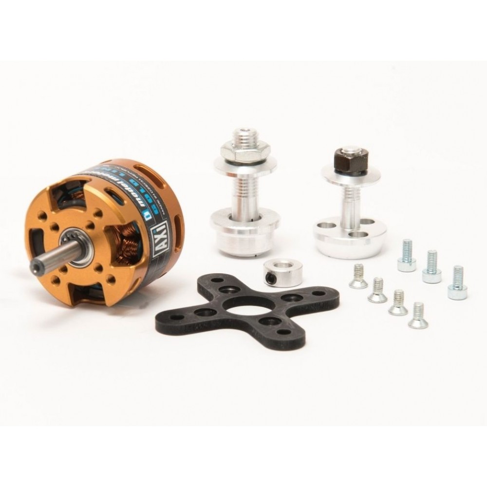 Sada motoru obsahuje: střídavý motor AXI 2808/16 V2 s kabely, unašeč pro pevnou vrtuli, sadu pro zadní montáž, návod.